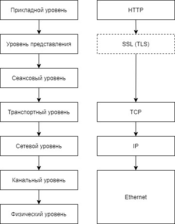 Некоторые уровни могут отсутствовать и/или объединяться. Рассматривать работу схемы начнём с верхнего уровня — с того самого ввода адреса в адресную строку.